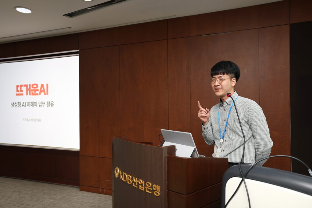 지난 7월, KDB 산업은행 하반기 팀장급 워크샵에서 “생성형 AI 이해와 업무 활용”을 주제로 강의를 진행했습니다. 이번 강의는 금융 산업의 최전선에 계신 팀장급 임직원들을 대상으로 했으며, 부행장님께서도 참석해 주셨습니다.